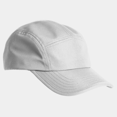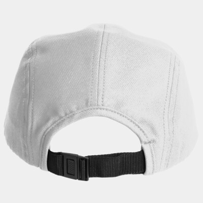 100% polyester; Runner style; Unique panel design; Precurved bill with self-fabric binding; Adjustable webbing strap with technical buckle closure;