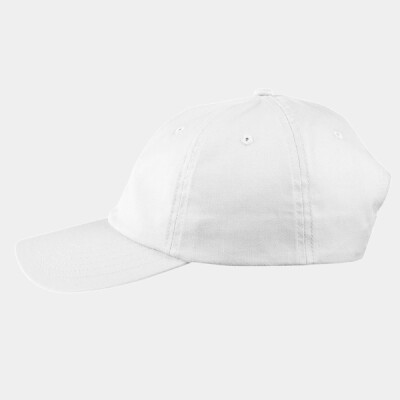 100% Cotton Twill; 6-panel, unstructured, low-profile; Sewn eyelets; Snapback closure;